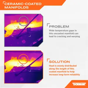 - Description: Want to make sure your new exhaust manifold performs better and lasts longer than the original? No need to buy a replacement and get it specially coated. This manifold comes with a specialized ceramic coating that more evenly distributes heat, both helping to prevent thermal cracking as well as enabling smoother exhaust gas flow.