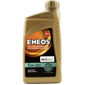 - Description: ENEOS 5W-30 Fully Synthetic Motor Oil is 100% fully synthetic motor oil blended from high-performance hydro-refined base oils and an optimized additive blend to provide enhanced piston cleanliness, reduced engine sludge, and improved turbocharger protection. It provides outstanding oxidation stability at high temperatures. Meets API SP and ILSAC GF-6A standards, and is dexos1 Gen3 approved, providing broad compatibility with domestic and import vehicles. Formulation properties provide enhanced protection for turbochargers. Additionally, ENEOS 5W-30 provides outstanding oxidation stability at high temperatures.