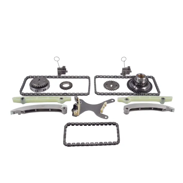 - Description: Made In USA. Melling timing set includes timing chain (3), timing chain guide (2), timing chain tensioner (3), timing chain tensioner guide (2), crankshaft sprocket (1), camshaft sprocket (2), and idler sprocket (1) for 14 pieces in this kit. Made In USA. Melling timing chain kits provide an efficient and economical way to provide the timing components needed for a quality engine rebuild. Timing chain options include both standard and roller chains to provide matches with the high quality sprockets and if necessary tensioner and guides that fit the application. Both OEM and performance timing chain kits are available. Melling chains and sprockets are manufactured using the highest designs, quality materials and workmanship. Melling chain kits offer you the coverage and choices of standard, HD and performance to fulfill your timing needs at every service level.