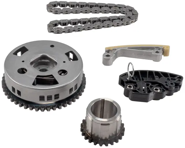 - Description: Melling timing set includes timing chain (1), timing chain guide (1), and timing chain tensioner (1) for 3 pieces in this kit. Melling timing chain kits provide an efficient and economical way to provide the timing components needed for a quality engine rebuild. Timing chain options include both standard and roller chains to provide matches with the high quality sprockets and if necessary tensioner and guides that fit the application. Both OEM and performance timing chain kits are available. Melling chains and sprockets are manufactured using the highest designs, quality materials and workmanship. Melling chain kits offer you the coverage and choices of standard, HD and performance to fulfill your timing needs at every service level.