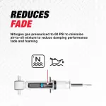 - REDUCES FADE -- Nitrogen gas pressurized to 60 PSI to minimize air-to-oil mixture to reduce damping performance fade and foaming